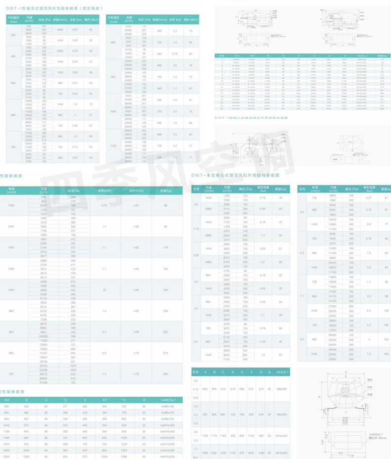 靖江市四季風空調設備有限公司——DWT系列軸流式屋頂風機分為二大類型,其一,軸流式屋頂風機:型號為DWT-II型、DWT-III型二種形式,宜適用于風量較小而壓力要求較高的場合。